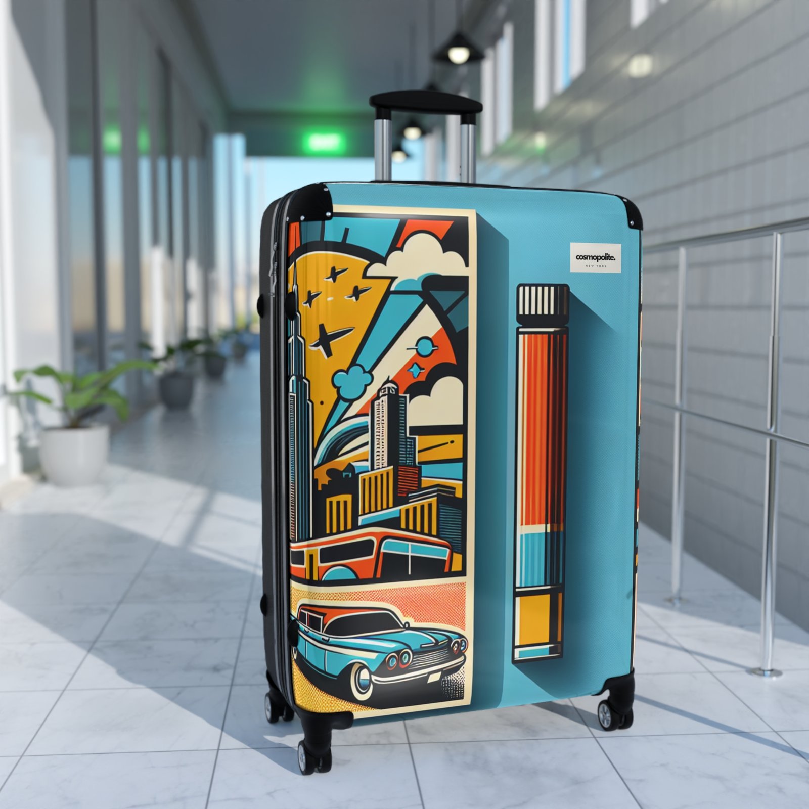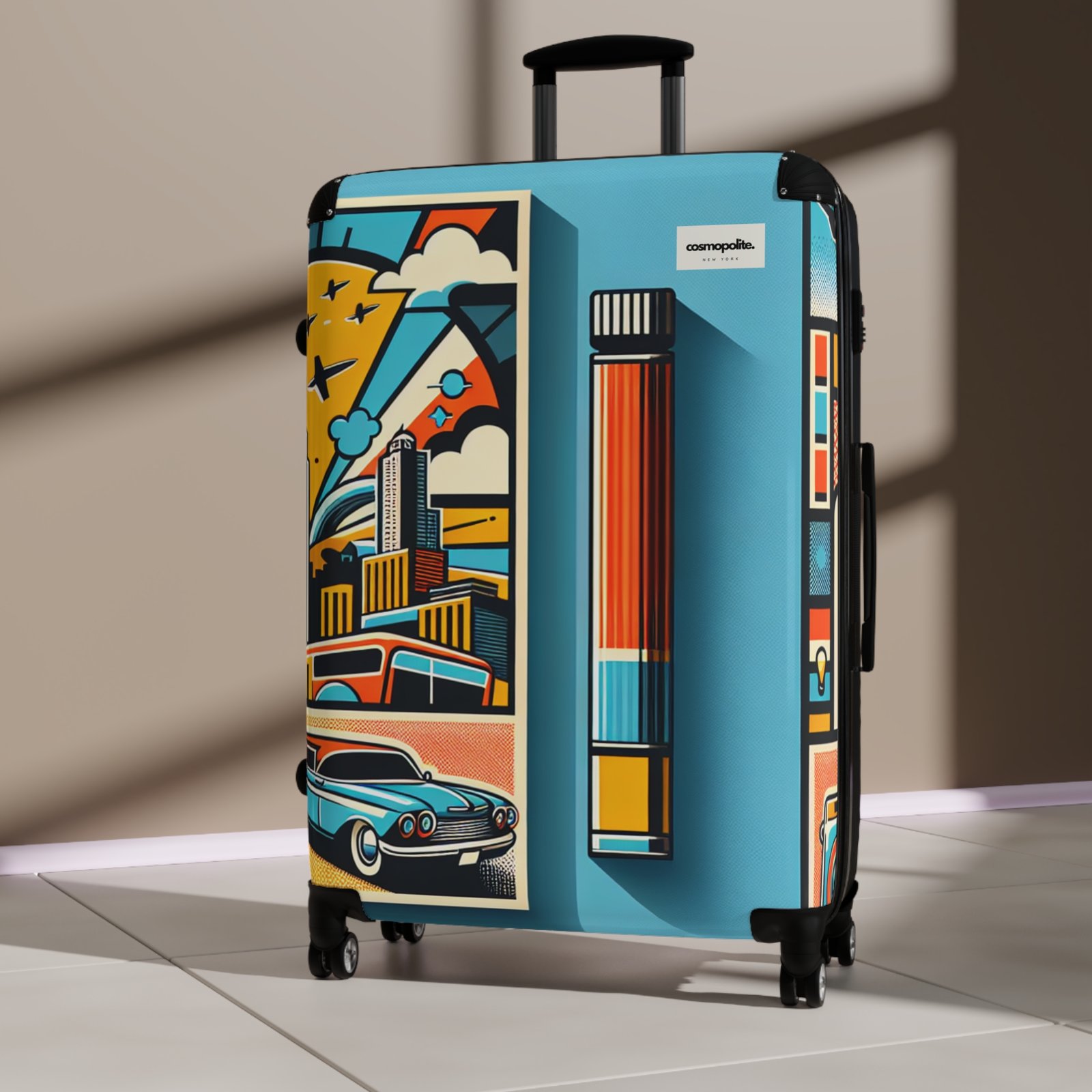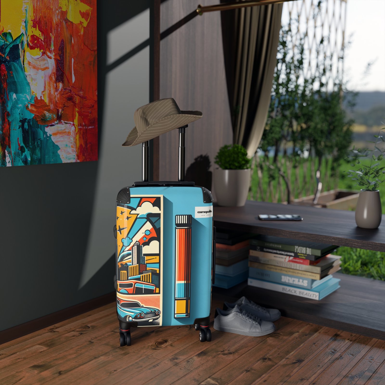Stylish Travel Suitcase with Vibrant Cityscape Design