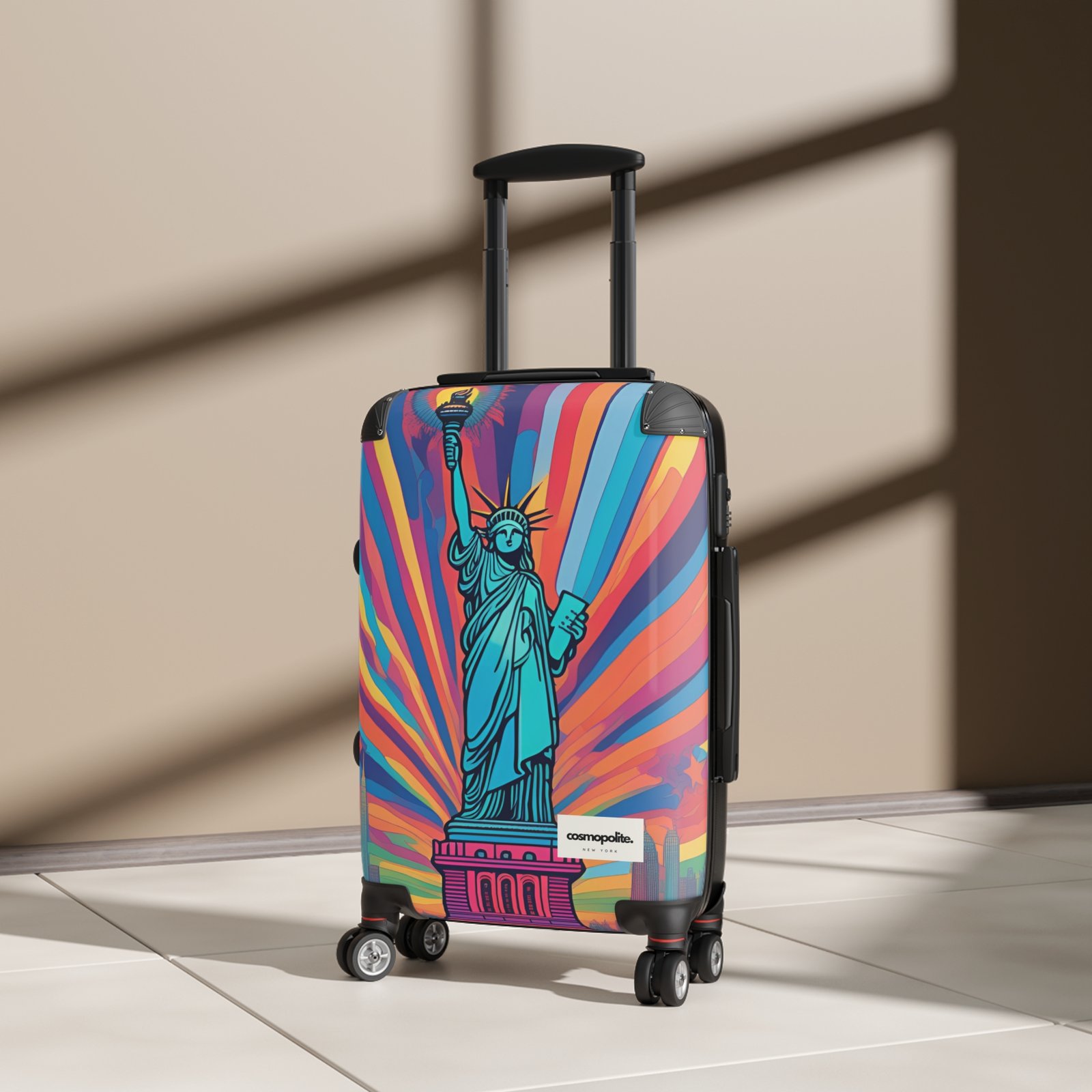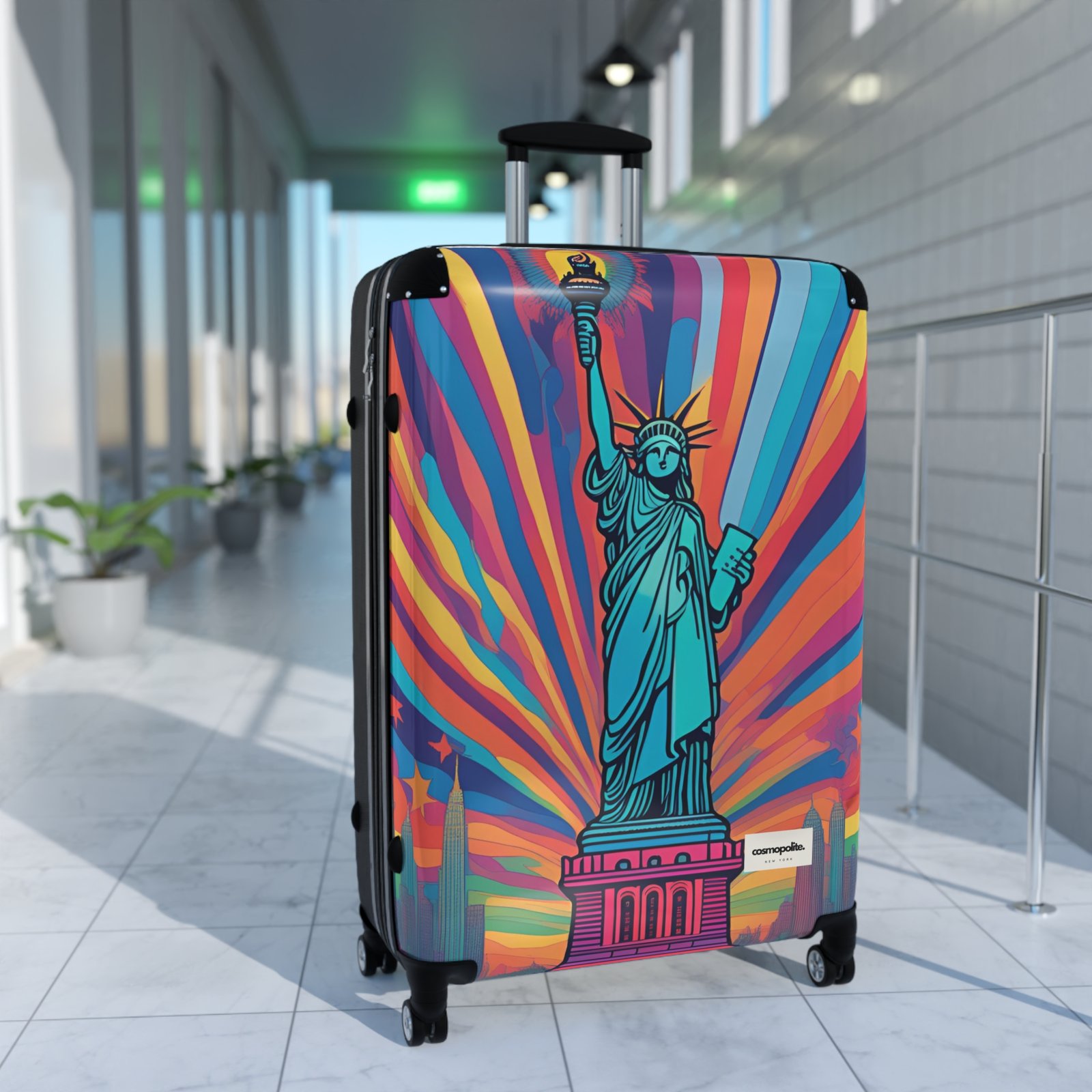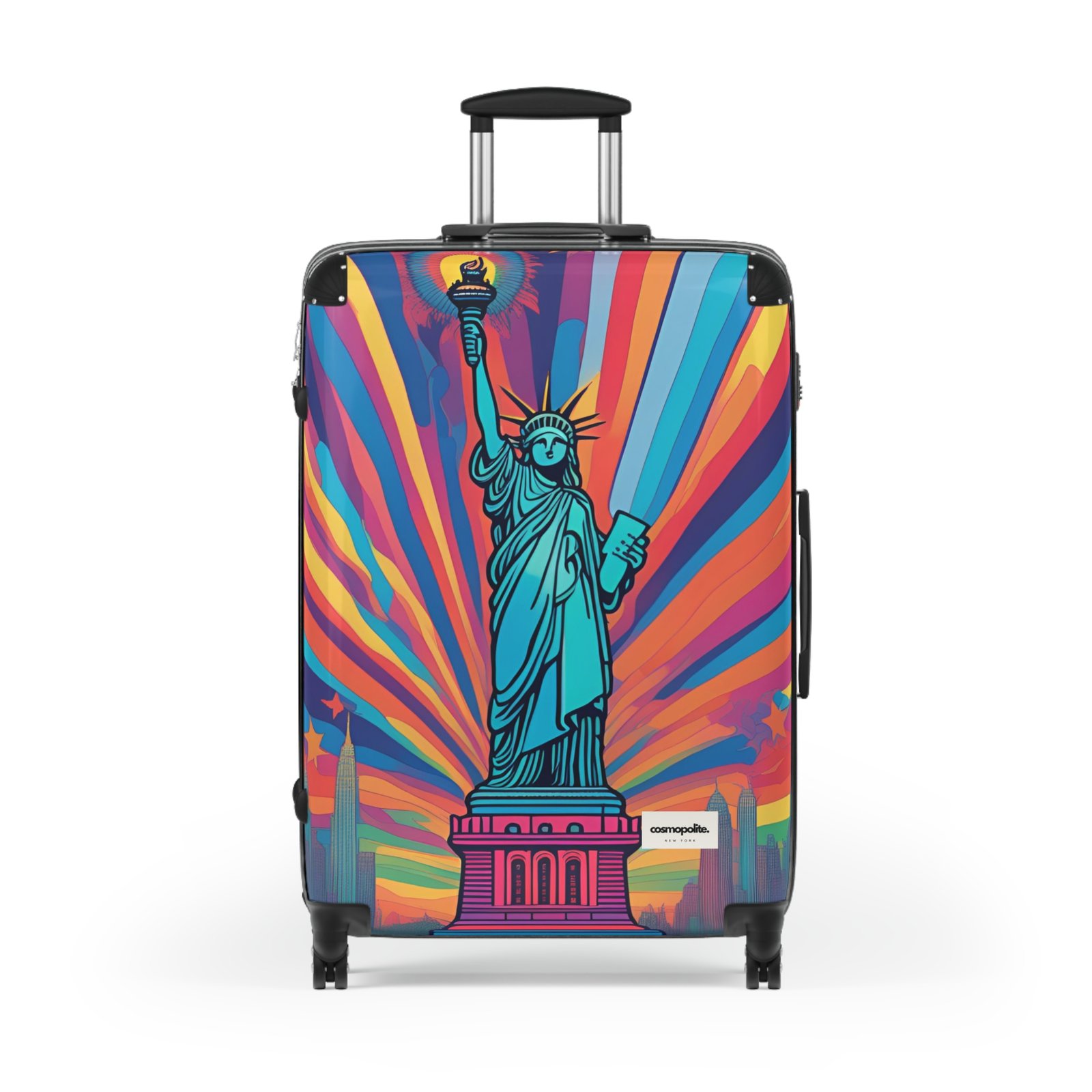 Vibrant Travel Suitcase with Statue of Liberty Design