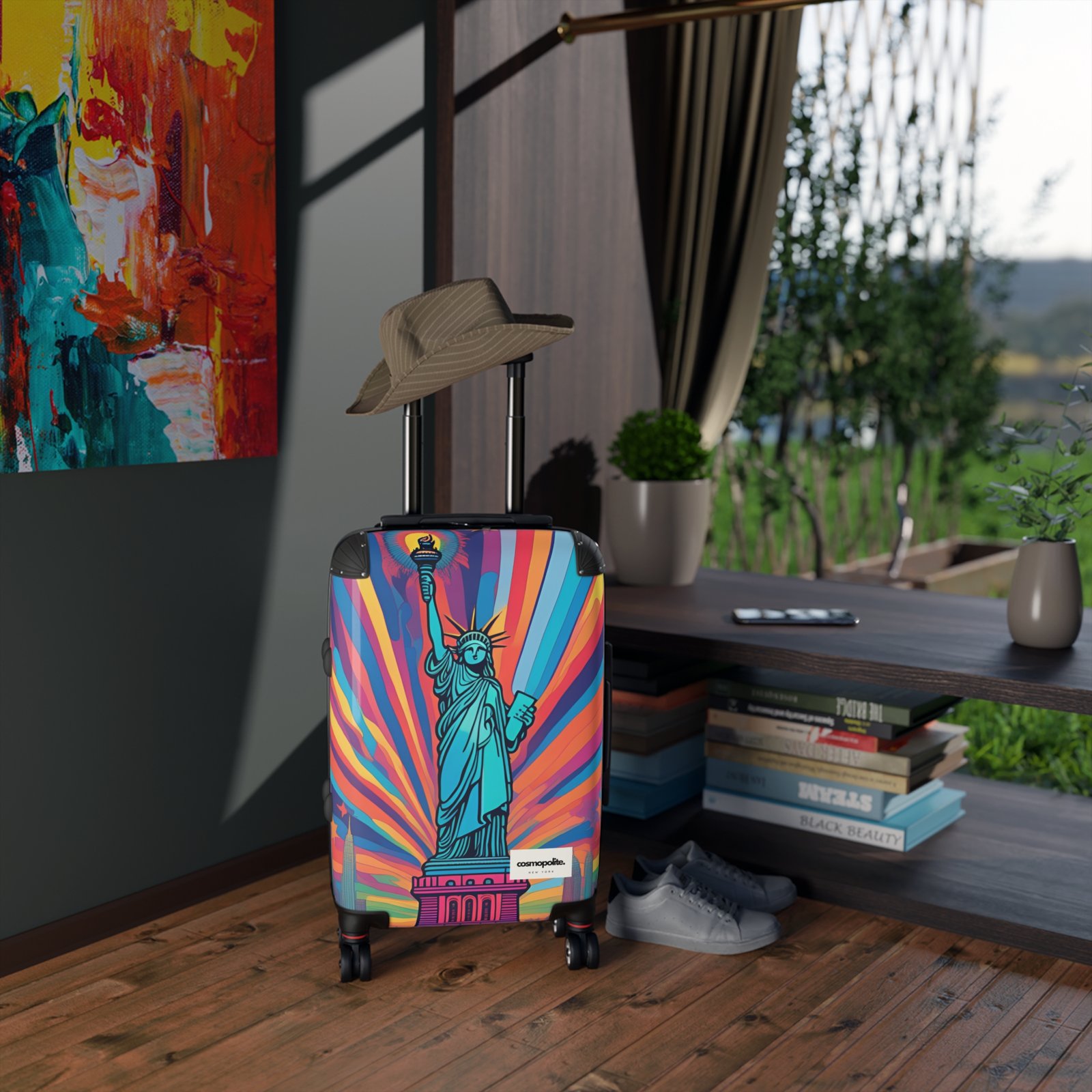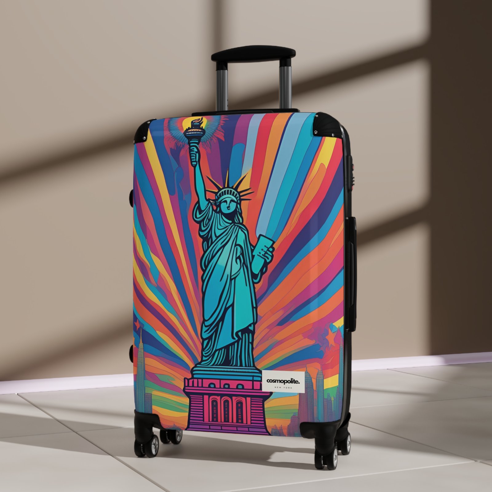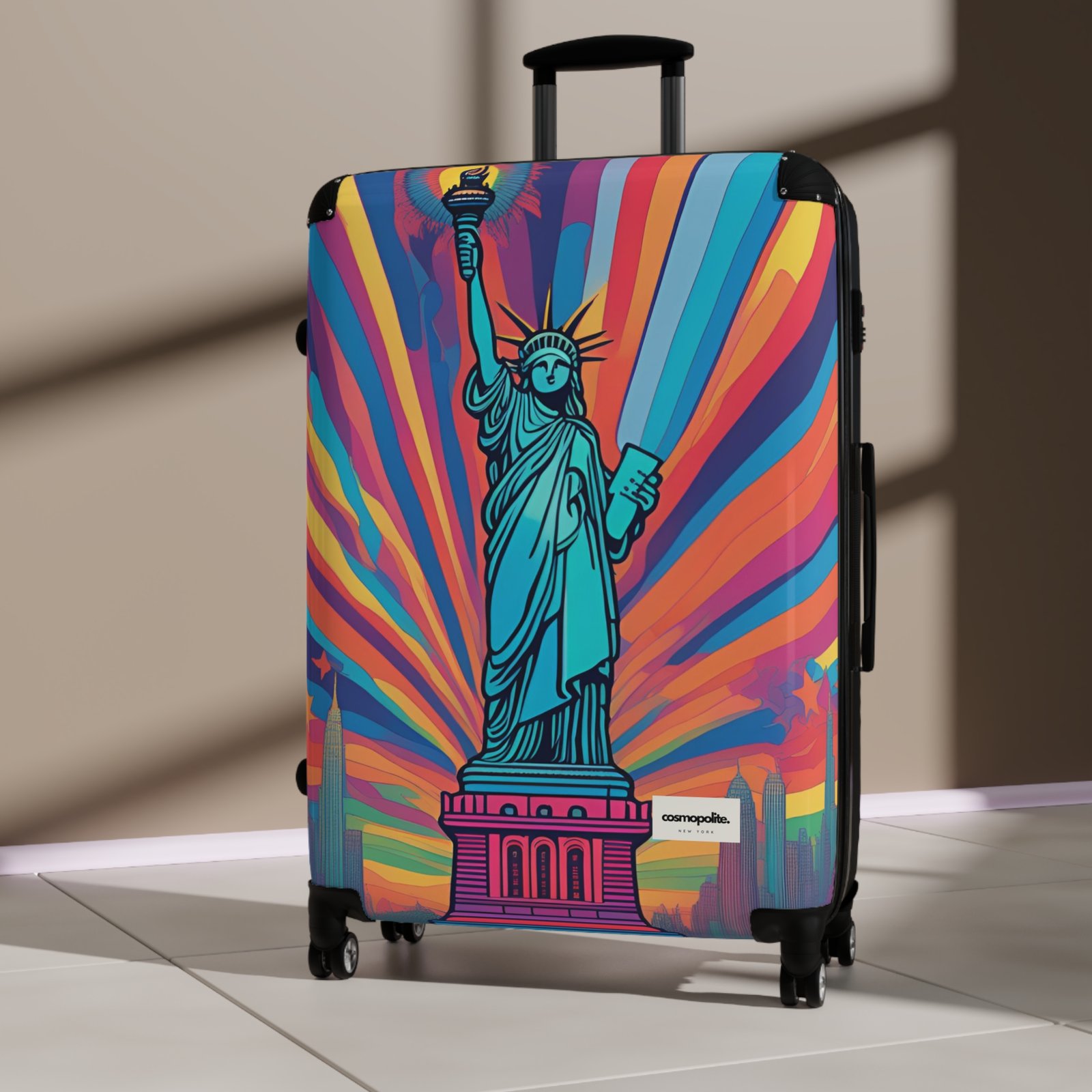 Vibrant Travel Suitcase with Statue of Liberty Design